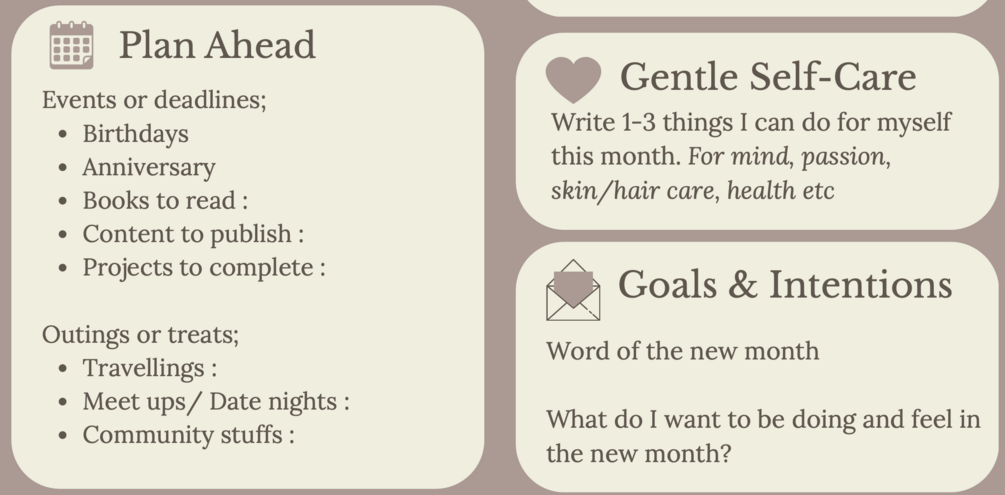 A gentle reflection guide for a soft reset, with space for creativity and planning